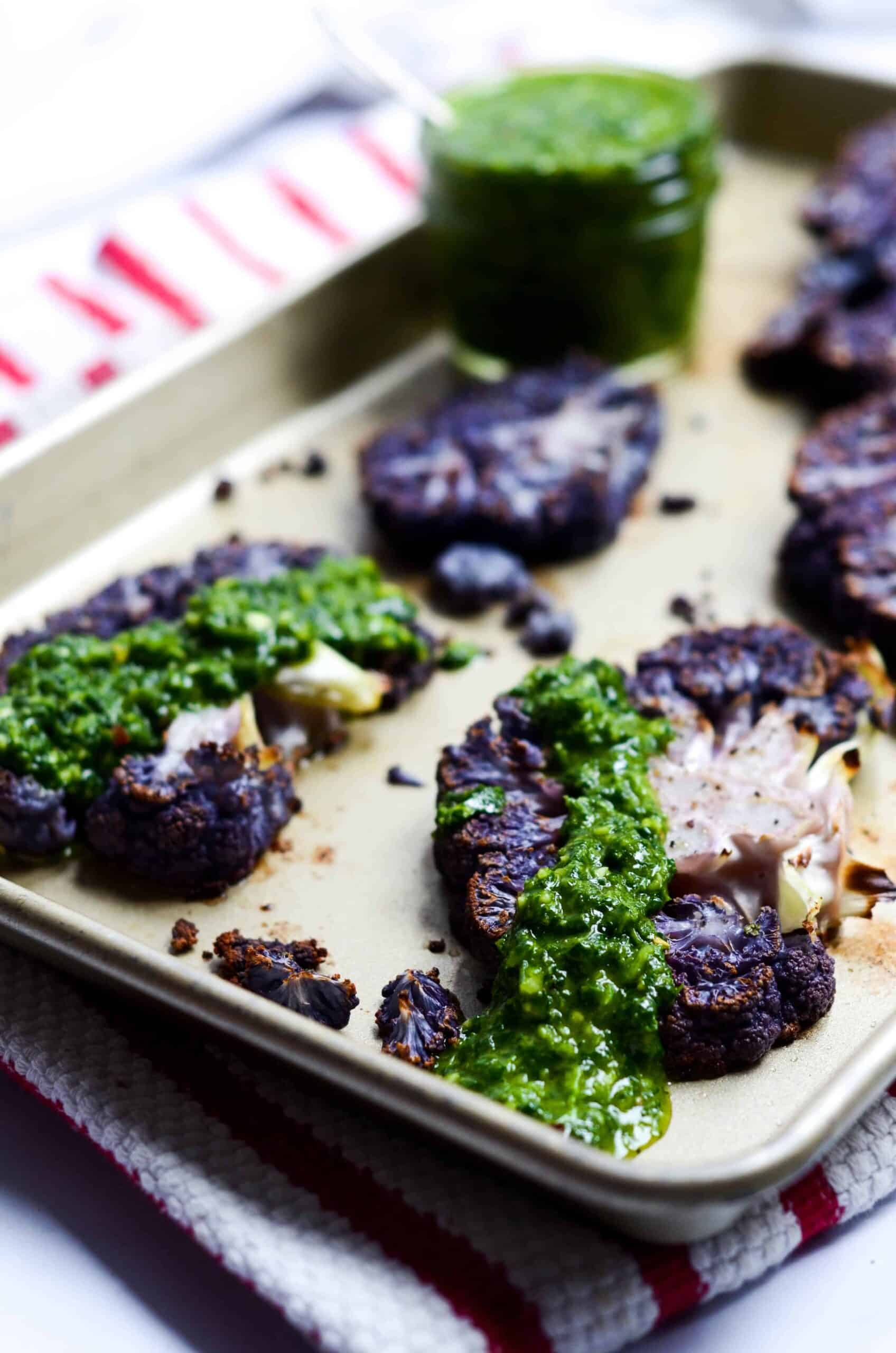 Purple Cauliflower Steaks with Chimichurri (Vegan, Gluten Free)